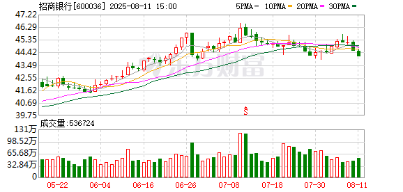 招商银行8月11日大宗交易平台出现一笔成交,成交量37.42万股,成交金额1650.22万元,大宗交易成交价为44.10元。该笔交易的买方营业部为国泰海通证券股份有限公司深圳深南大道京基一百证券营业部,卖方营业部为瑞银证券有限责任公司上海花园石桥路证券营业部。